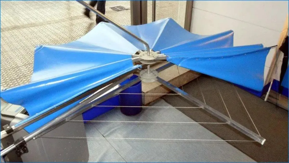Tendedero de gran capacidad con brazo telescópico. Ideal para terrazas y patios amplios.